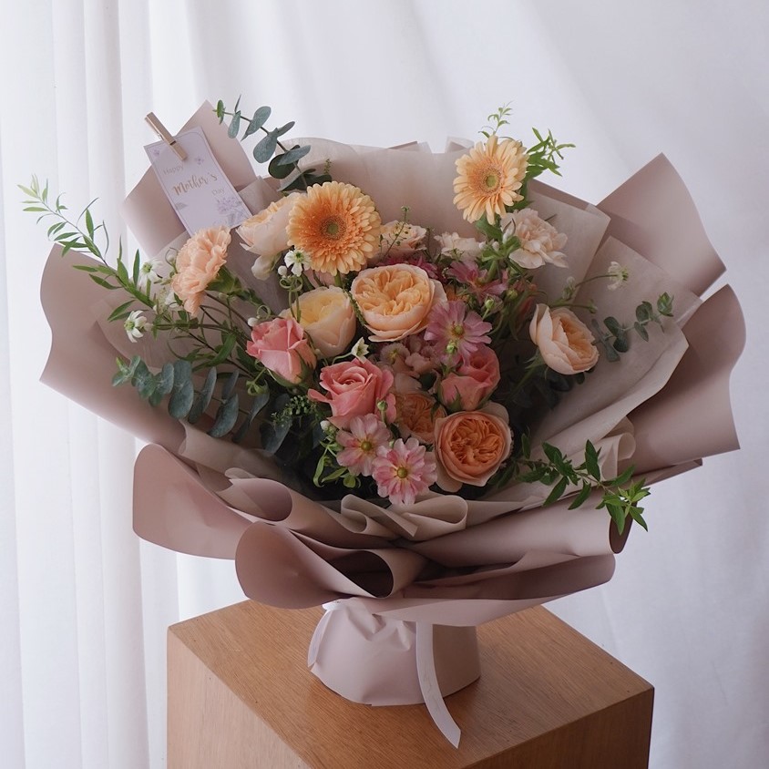 • 拿到花束後可放置於通風良好、陰涼處避免花朵因為悶熱而失水枯萎
